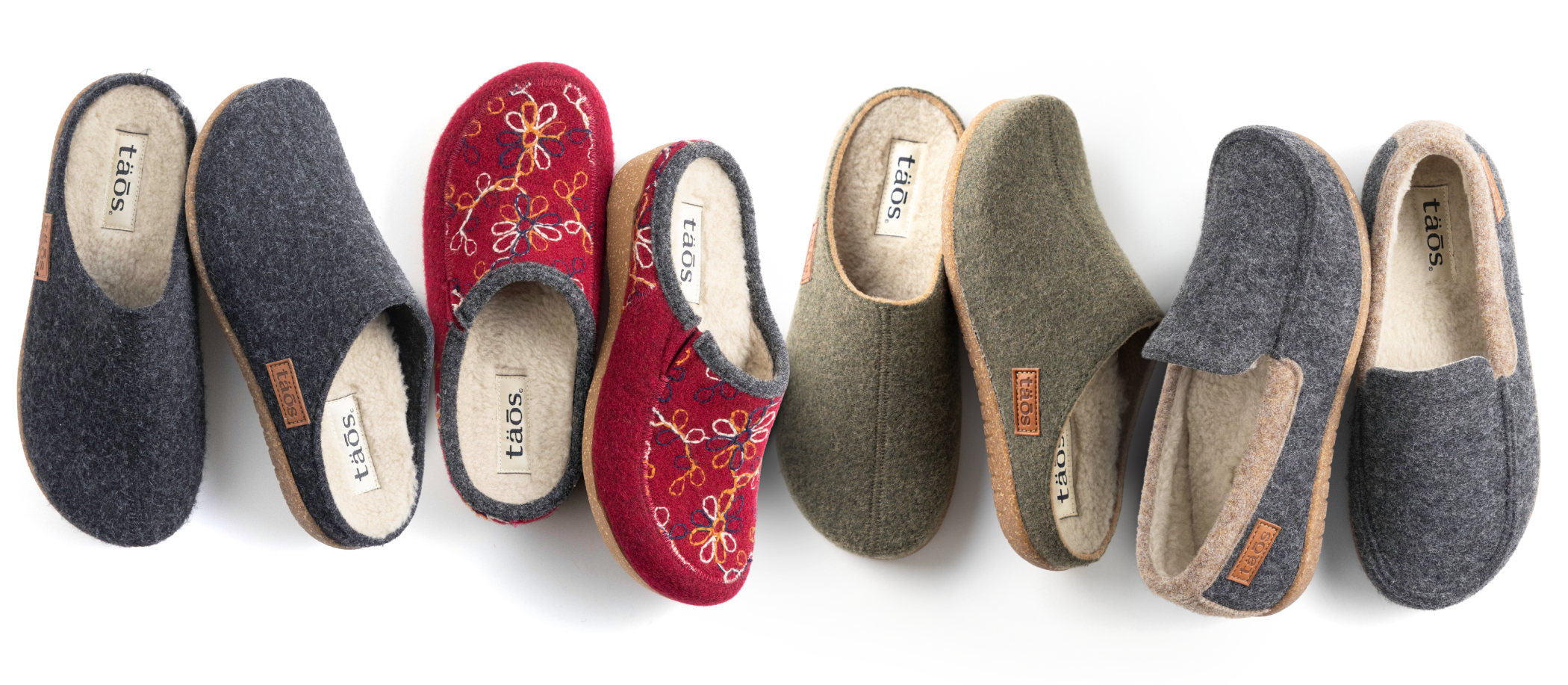 Handmade in Spain, exclusively for täōs, our Italian Wool collection is designed for all-day wear. Crafted from natural wool felt, these styles offer exceptional temperature regulation and insulation, making them the perfect choice for indoor and cold-weather comfort.